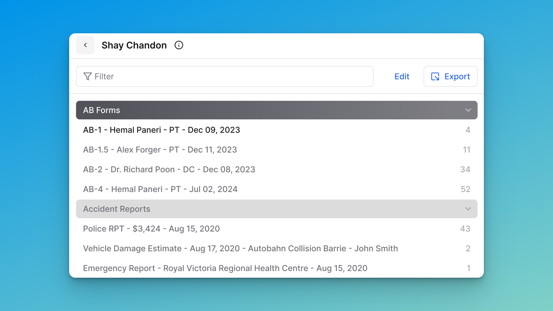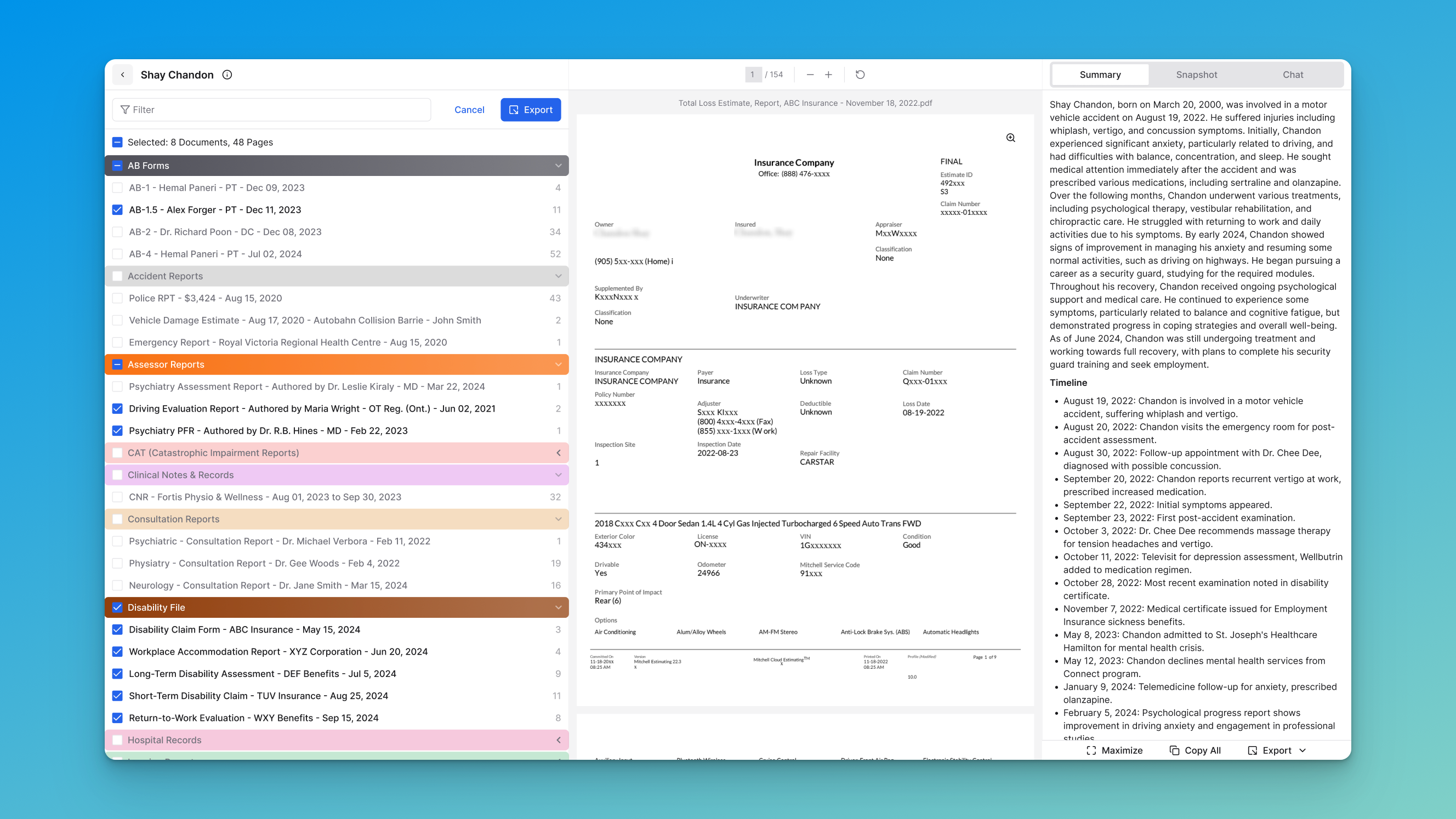The Export feature in Sky allows you to efficiently select, organize, and download documents from a case. You can export individual files, entire categories, or combine multiple selections into a single export package.