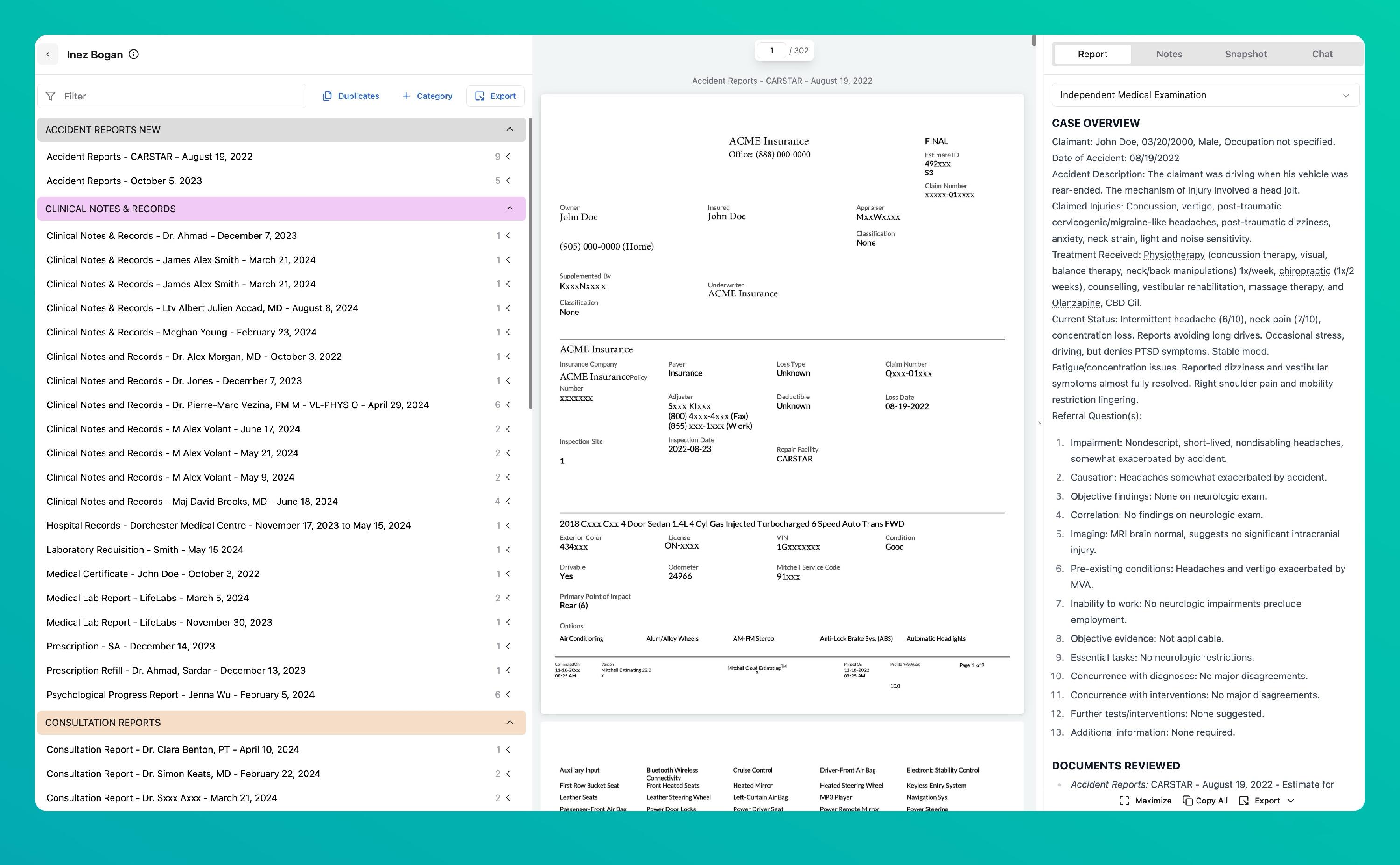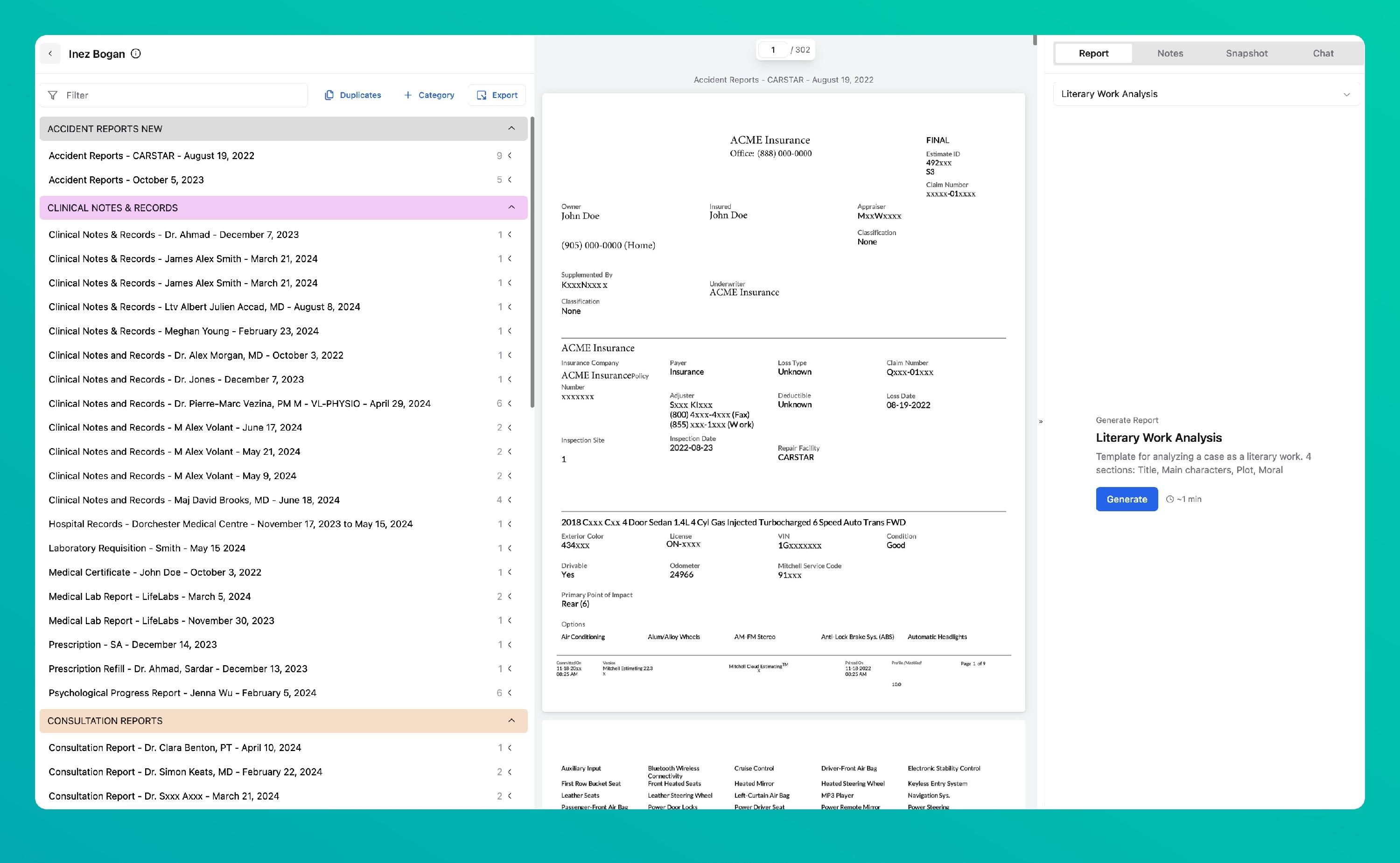 Click Generate to start building the report. Sky will analyze your selected template, extract relevant information from the case documents, and compile a structured draft automatically.