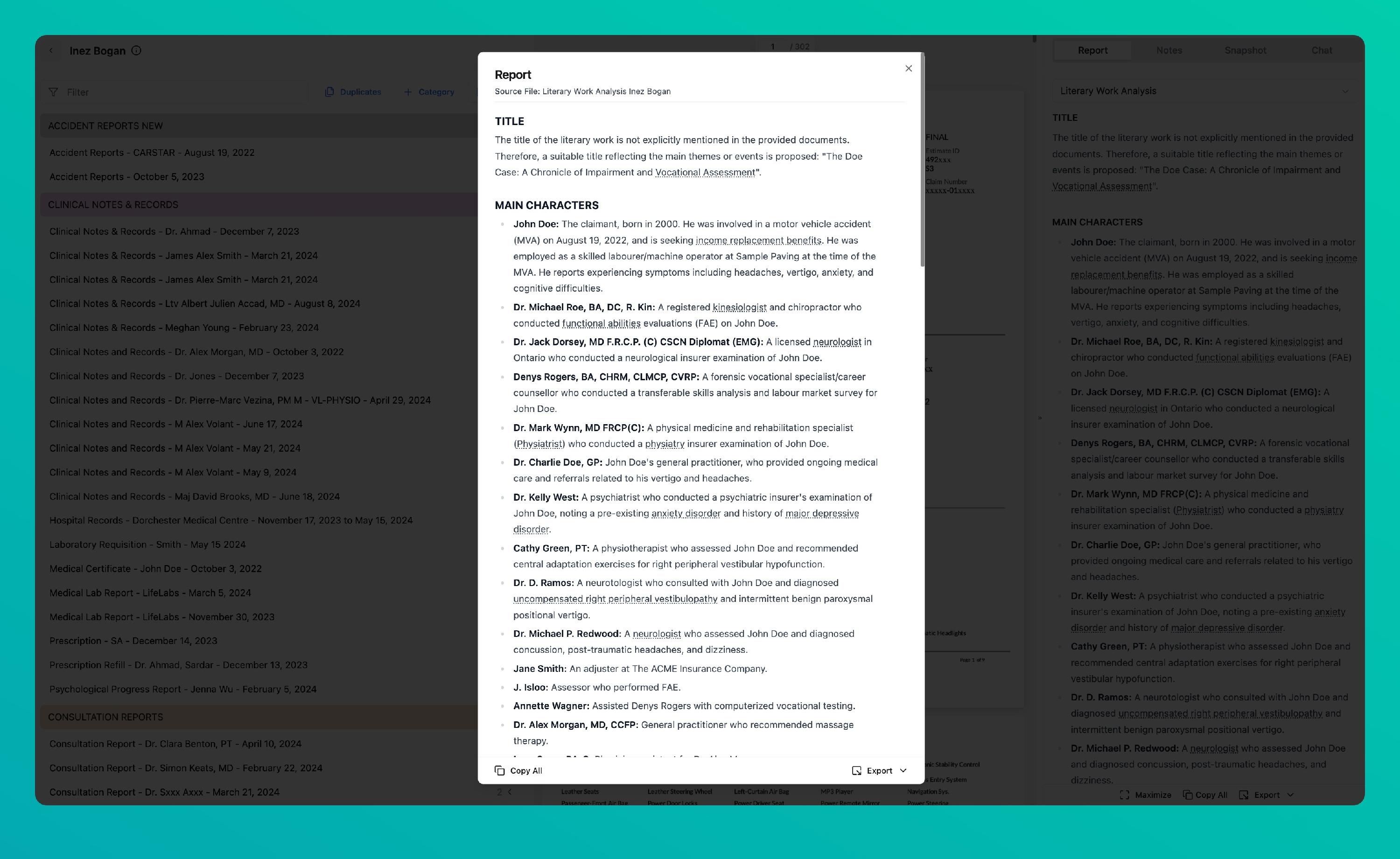 Sky allows you to create structured, AI-assisted reports directly from your case. You can choose from predefined templates, review automatically generated content, and export a polished report with just one click.