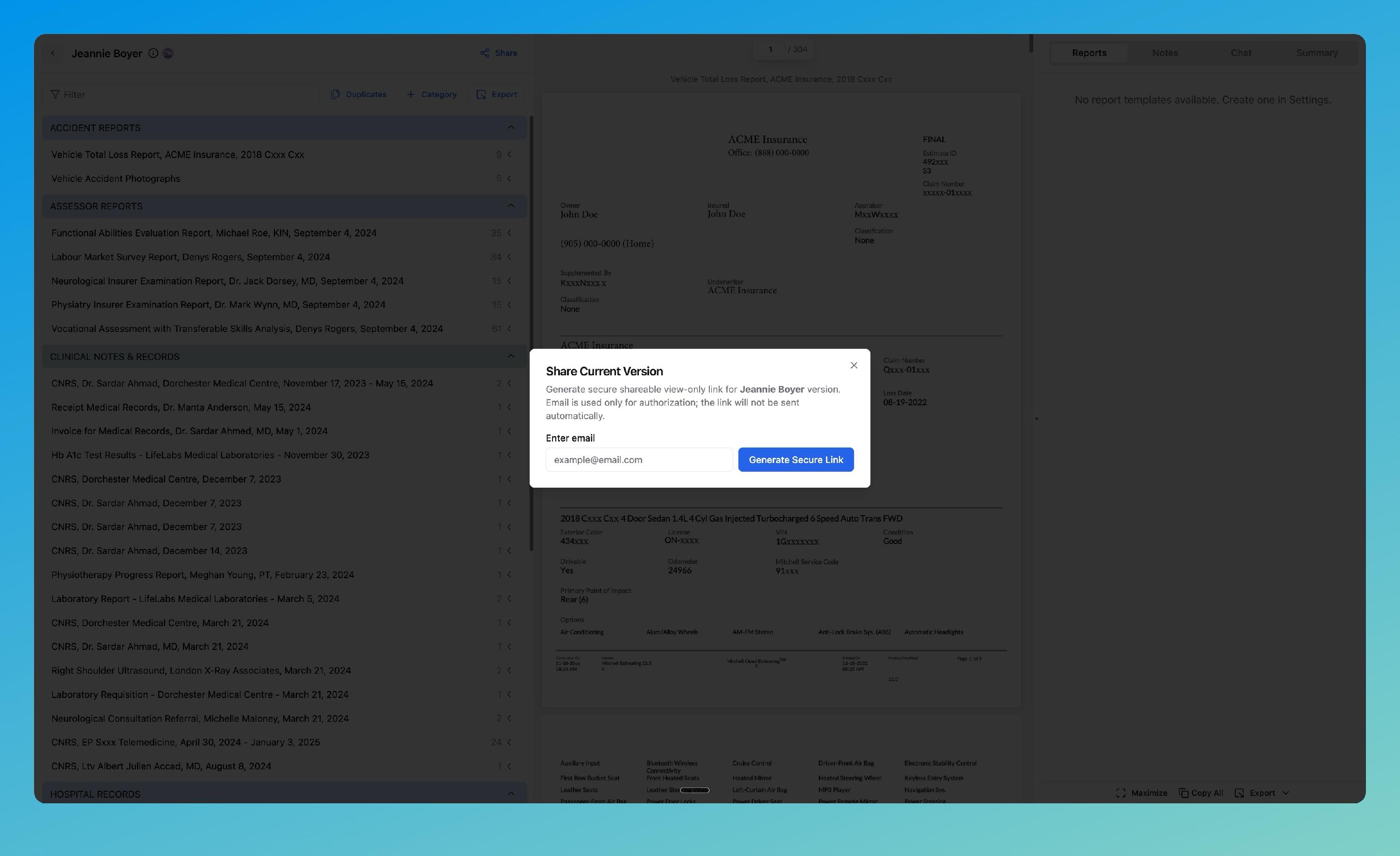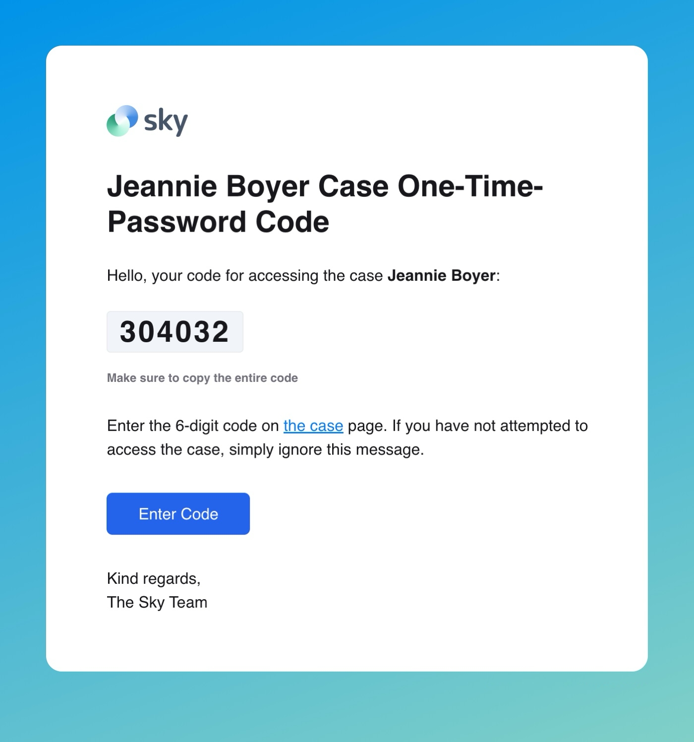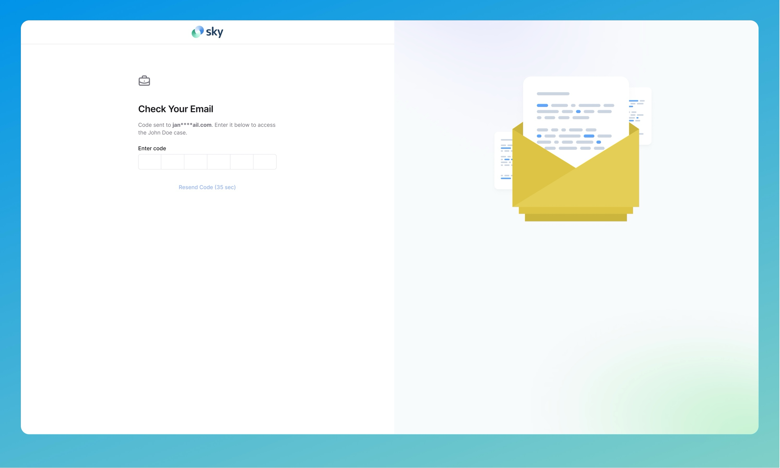 Sky will immediately create a secure, scoped link tied to the entered email address and the current case version.