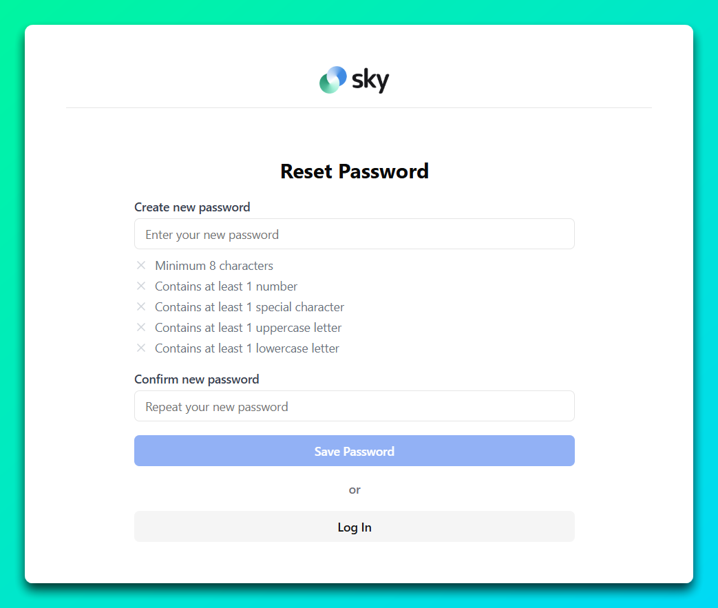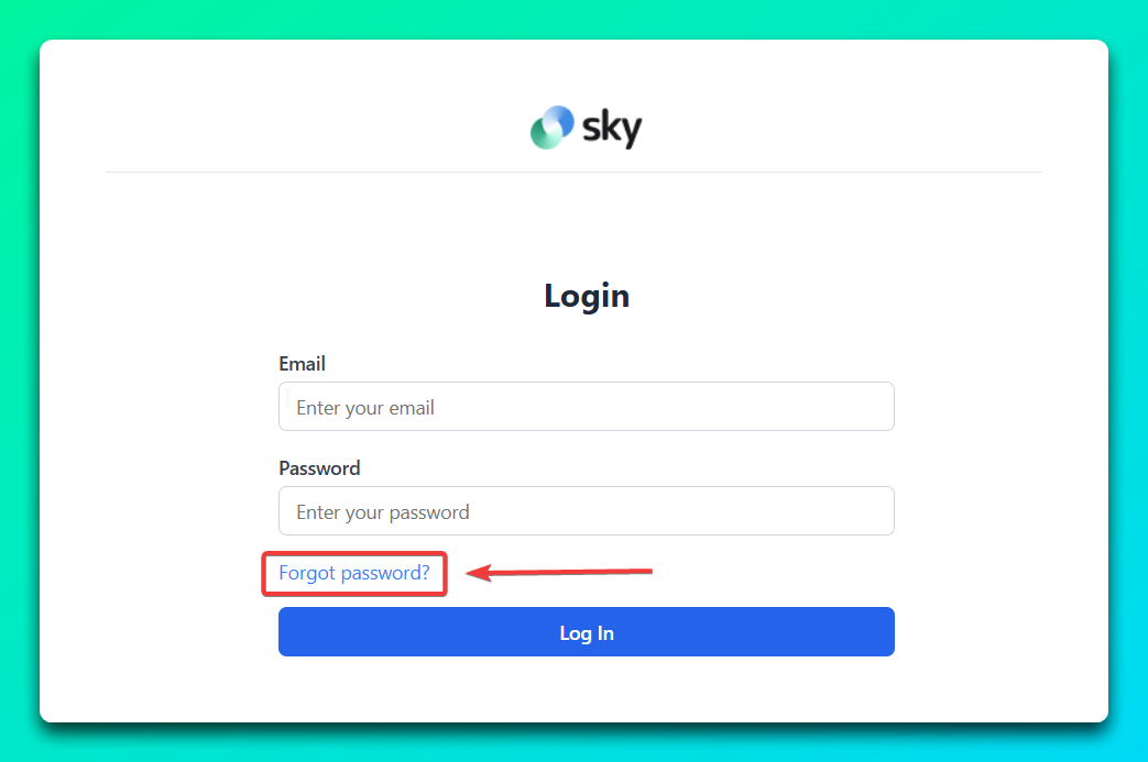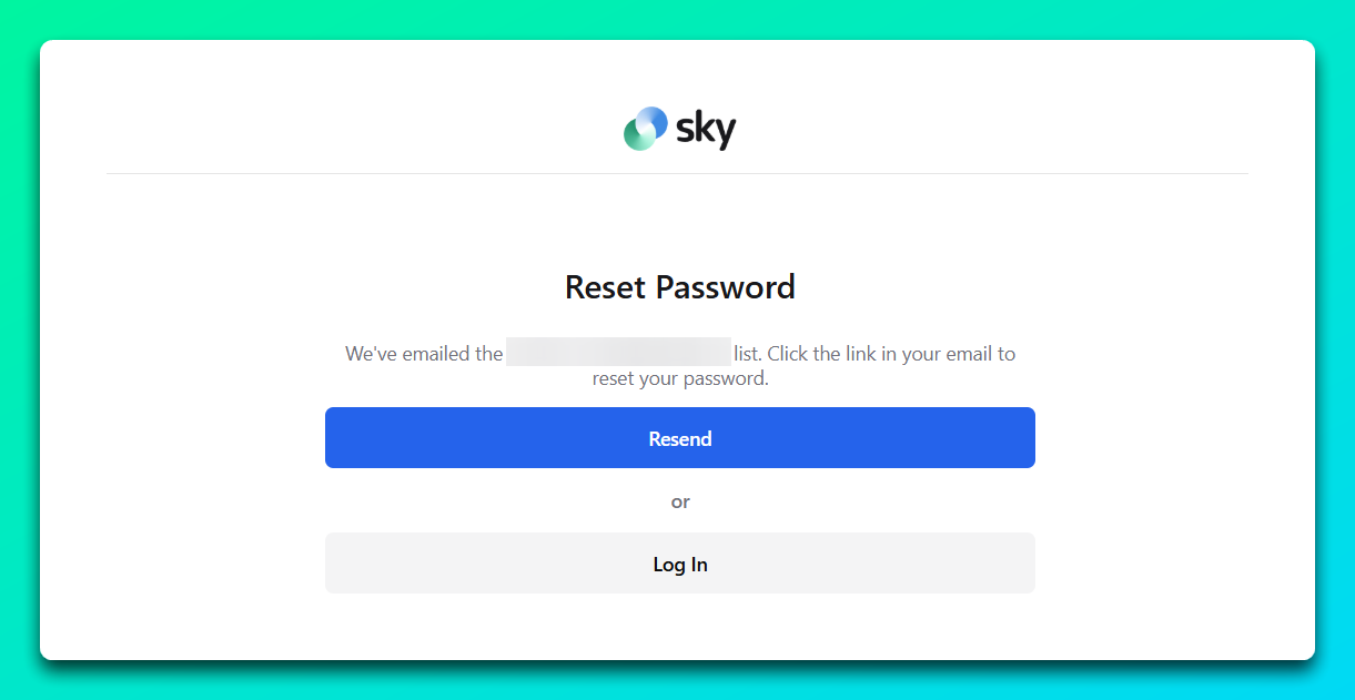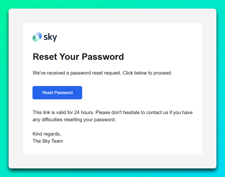 Open the email from Sky AI with the subject “Reset Your Password” and click the Reset Password button. This link is valid for 24 hours.