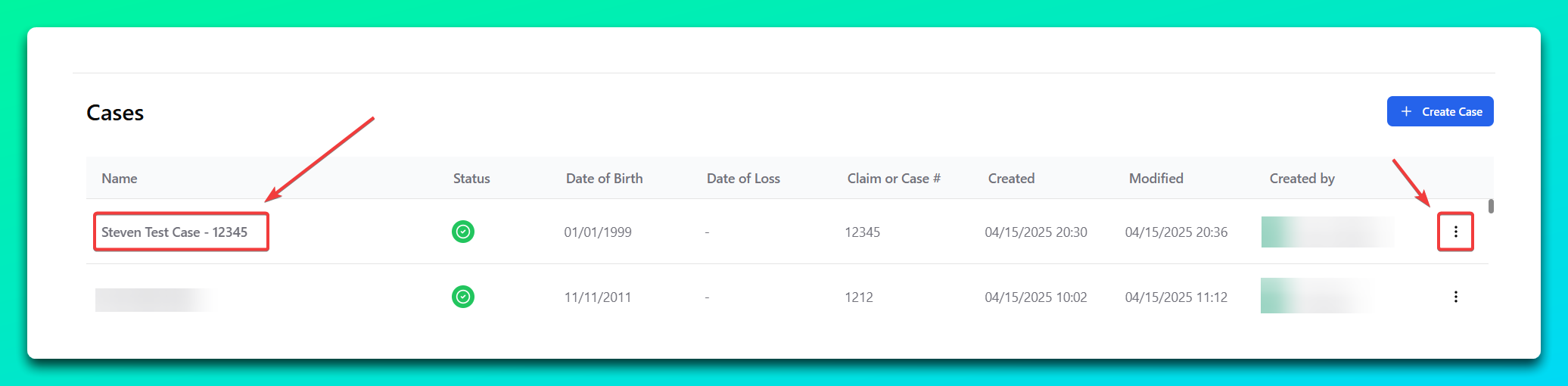 Navigate to the Cases section from the dashboard. Find the case you want to edit and click the three-dot menu beside it.